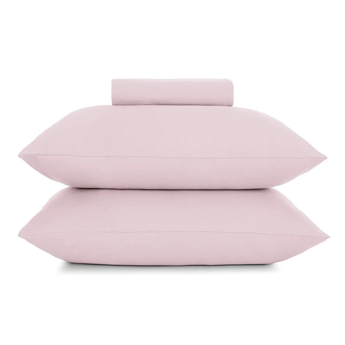 Confeccionado em tecido de malha 100% algodão, o Jogo de Cama Malha Fio Penteado é macio e garante uma noite de sono super aconchegante, além de complementar a decoração do quarto com um charme todo especial.