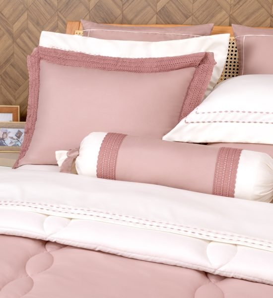 Com detalhes encantadores, a coleção Sonatta é perfeita para quem ama decorar a cama com estilo! O acabamento em renda nos porta travesseiros e no rolinho, aliado ao cobre leito dupla face, cria um visual elegante e digno de uma cama encantadora.