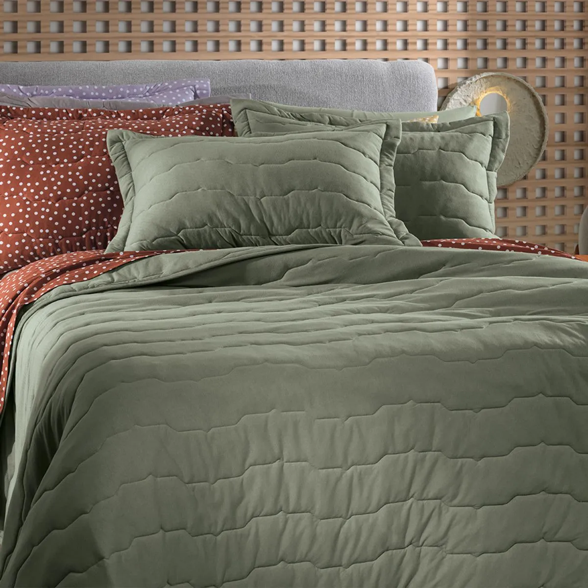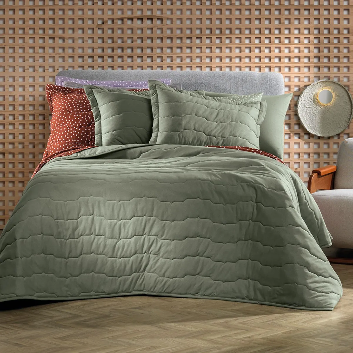 Jogo de Colcha Solteiro Altenburg Malha Fio Penteado Verde Bond