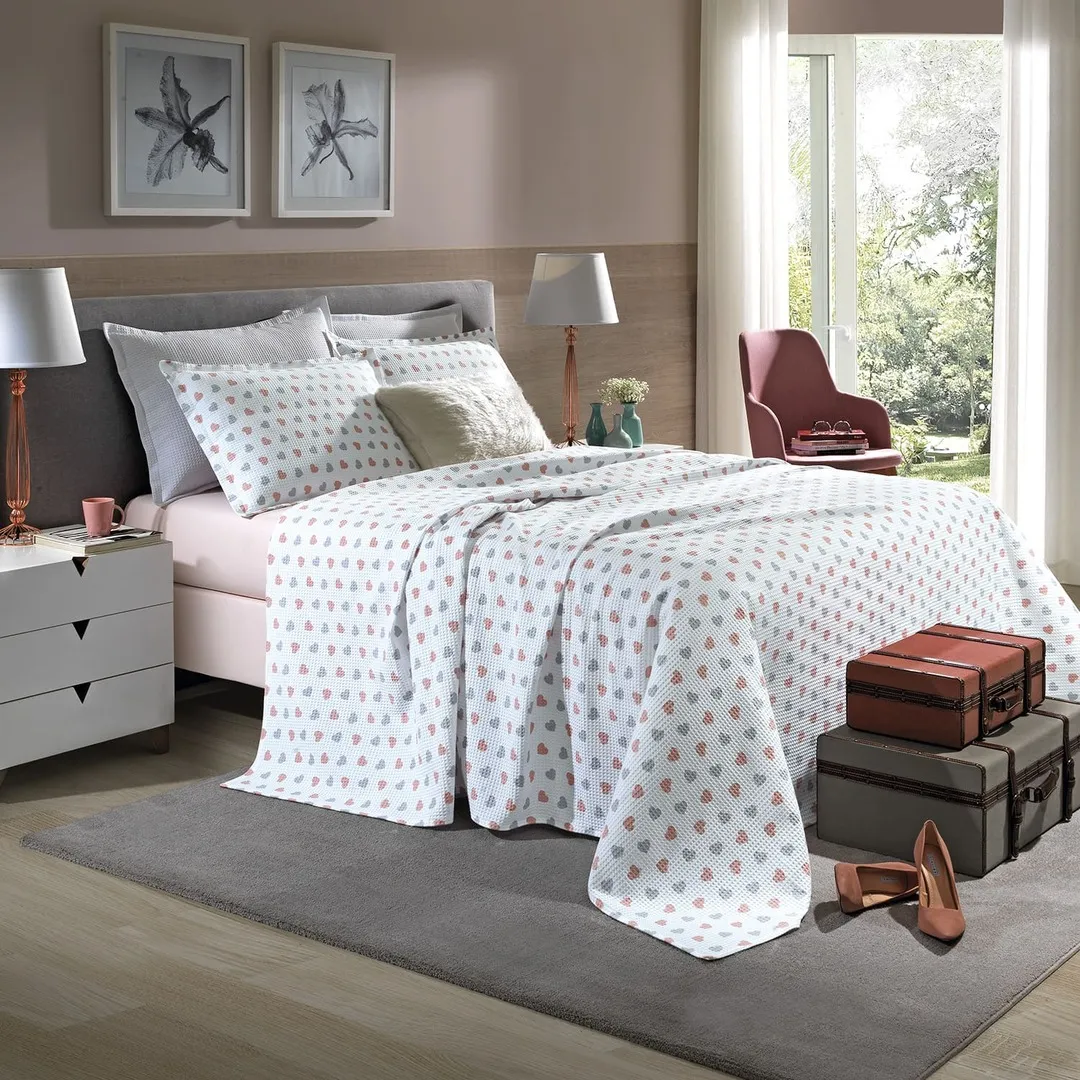 Compre o Kit Colcha Piquet Dohler Vênus Corações e tenha um quarto lindo e acolhedor!
