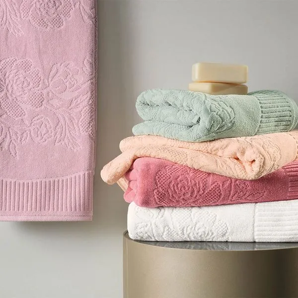 A Toalha de Banho Karsten 100% Algodão Grace Matcha é uma peça graciosa e elegante para compor a decoração do seu banheiro, além de contribuir para uma rotina mais prática e aconchegante pois tem uma super absorção e maciez com 440g/m². Seu corpo aveludado em Jacquard tem estampa em relevo de lindas flores que dão um toque sofisticado e elegante à peça.
