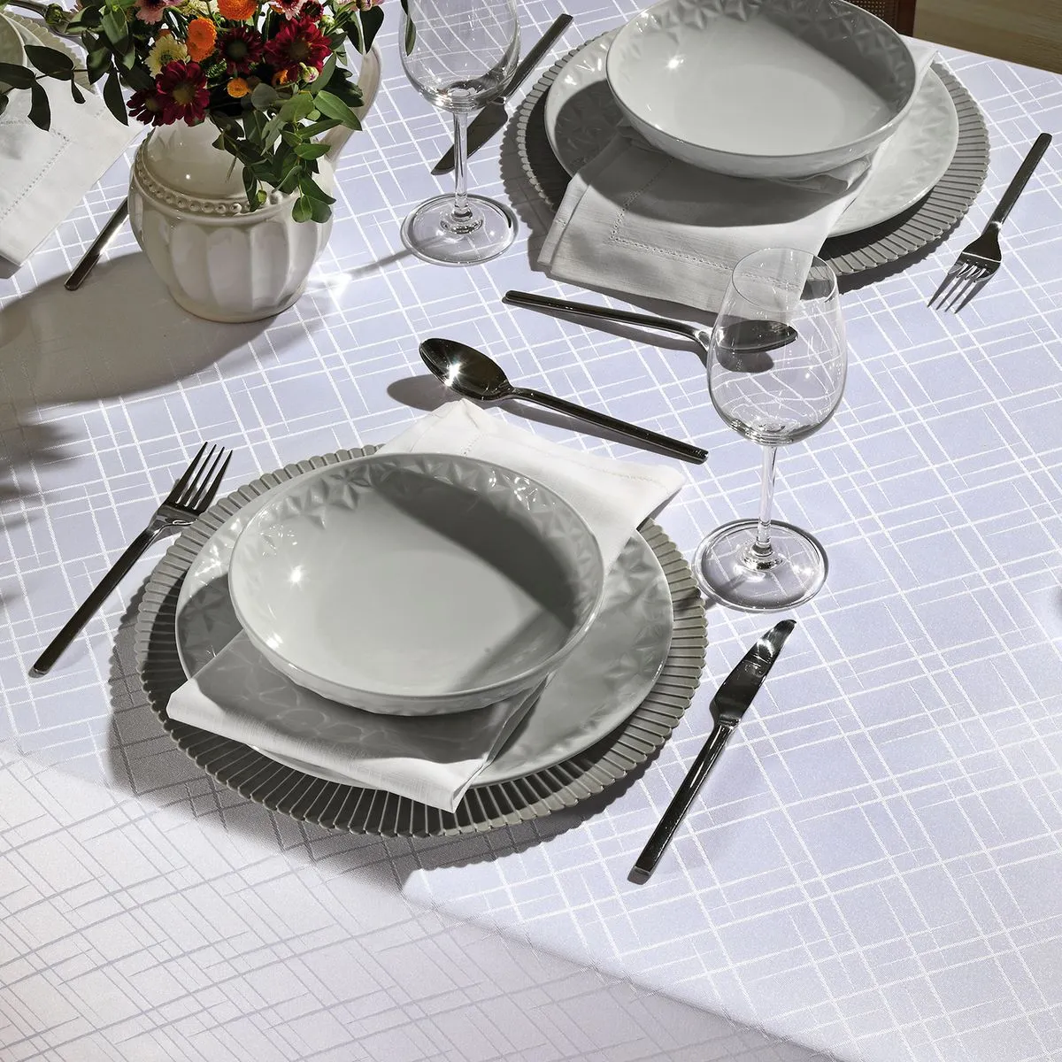 Fabricada em tela jacquard 100% poliéster, a toalha de mesa Requinte possui design moderno. Seus desenhos sofisticados e o fino acabamento, trazem elegância e personalidade para a mesa. 172 g/m² Tamanho:160cmx270cm 8 lugares.
